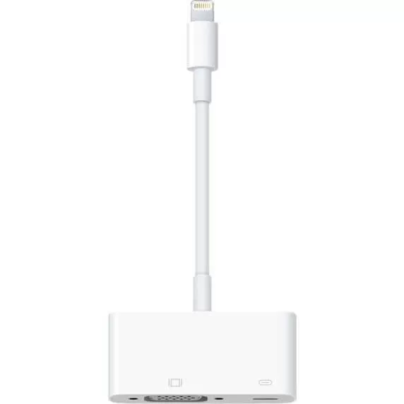 Use the Lightning to VGA Adapter with your iPhone, iPad, or iPod with Lightning connector. The Lightning to VGA Adapter supports mirroring of what is displayed on your device screen — including apps, presentations, websites, slideshows, and more — to your VGA-equipped TV, display, projector, or other compatible display in up to 1080p HD.
